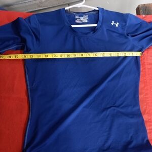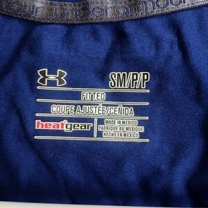 Under Armour fitted shirt in blue. Features a sleek design with logo detailing.