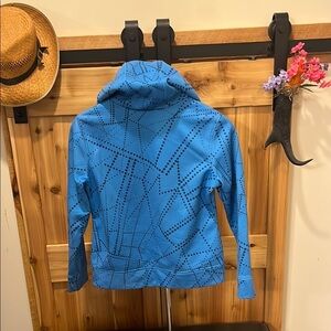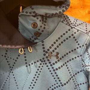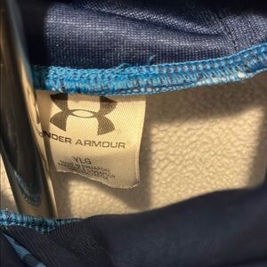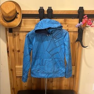 This Under Armour blue hoodie combines style and functionality with its striking geometric design. Perfect for outdoor activities, it features a comfortable fit and a hood for added warmth. Made from durable materials, this sweatshirt is ideal for any casual occasion.