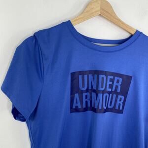 Under Armour Blue Logo Print Short Sleeve Activewear T Shirt Womens Size Medium