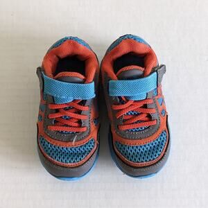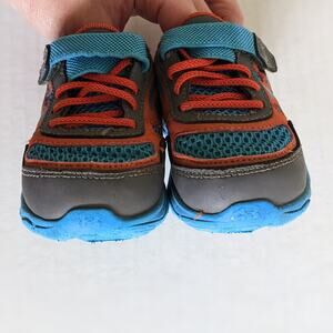 Under Armour Blue & Orange Sneakers Size 5 Elastic Laces Pull On Hook & Loop