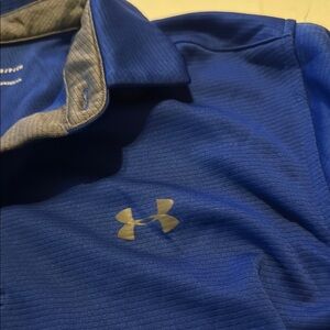 Experience the perfect blend of style and functionality with this Under Armour blue polo shirt, crafted from moisture-wicking fabric for optimal comfort during any activity. The vibrant blue color and contrasting collar add a touch of sophistication to its classic design, making it ideal for both athletic pursuits and casual outings.
