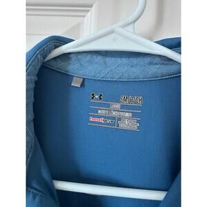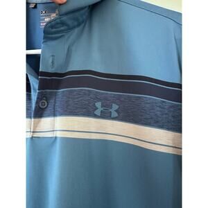 Elevate your golf game with this stylish Under Armour polo! This short-sleeve polo shirt features a vibrant blue color with eye-catching chest stripes, perfect for a day on the course or a casual outing. Key Features: - Brand: Under Armour - Size: Men's Small - Color: Blue with chest stripes - Sleeve Length: Short Sleeve - Pit to Pit Measurement: 20 inches - Style: Golf Polo This polo is in excellent condition and ready to wear. Don't miss out on adding this comfortable and fashionable piece to your wardrobe. Grab it now and hit the green in style!