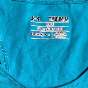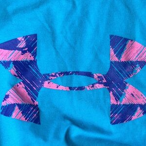 Vibrant blue tank top. Features purple Under Armour logo. Comfortable and stylish.