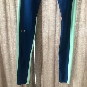 Under Armour blue and turquoise compression leggings. Size extra small. color blocked style.