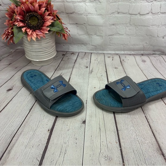 Under Armour Blue and Gray Slide Sandals men's sz 8 beach casual athleisure
