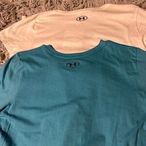 Experience the perfect blend of style and performance with these Under Armour short sleeve tees, available in striking blue and classic white. Crafted from high-quality athletic material, these tees feature the iconic Under Armour logo prominently displayed on the front, ensuring you stay comfortable and stylish during any activity.