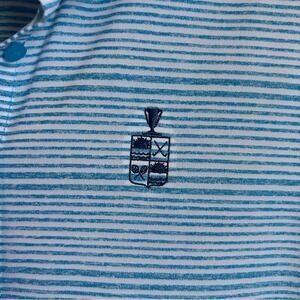 Bright sky blue and white striped sleeveless “Heat Gear” golf or tennis polo shirt with half button-up design. Lightweight, breathable UPF 50+ material. New with tags—never worn! Excellent condition!