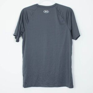 Under Armour Boys Heat Gear Short Sleeve Shirt Size Youth XL Gray Sports Logo