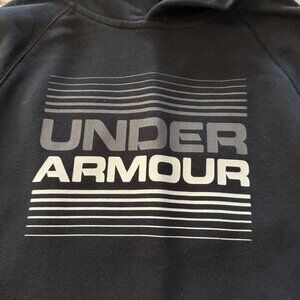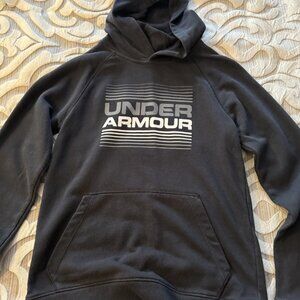 This Under Armour Boys Hoodie Sweatshirt Pullover in size Youth Medium is a stylish and versatile activewear piece for young boys. The black sweater features long sleeves, a round neckline, and a pullover closure for easy wear. With a hooded design, this hoodie is perfect for various sports activities and casual occasions during the winter, fall, and spring seasons. Made by the trusted brand Under Armour, this athletic-themed sweatshirt is machine washable for easy care and is ideal for active boys who enjoy activities such as golf, hockey, basketball, and more. Great Condition - No Stains or Holes, minimal fade. Shipped with USPS. From a smoke free and pet free home.