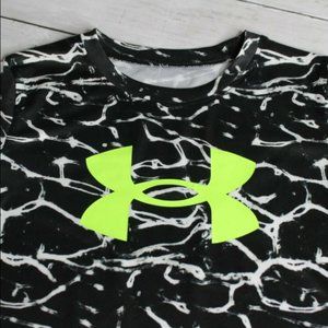 Under Armour Boy's Performance Athletic Shirt Size 6 Black Green Logo