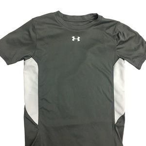 Under Armour Boys Size Large Loose Shirt HeatGear Dri-Fit Gray White