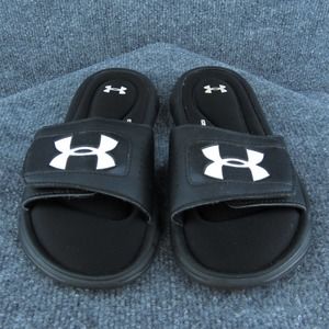 Under Armour Boys Slide Shoes Sandal Black Synthetic Slip On Size Y 5 Medium