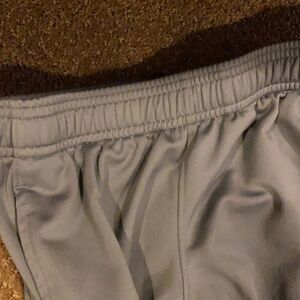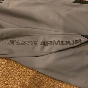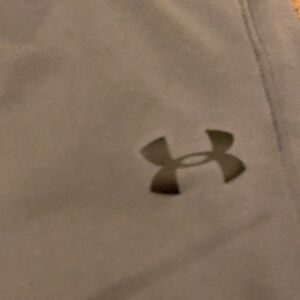Under Armour Boys Grey & Black Athletic Pants. Elastic waistband. Pockets. Made of polyester. Small mark on bottom back. Otherwise not really worn much. Size YS.