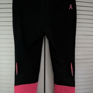Under Armour Breast Cancer Awareness Capri Leggings S/P Pink Black Mesh Logo Detail Zip Pocket