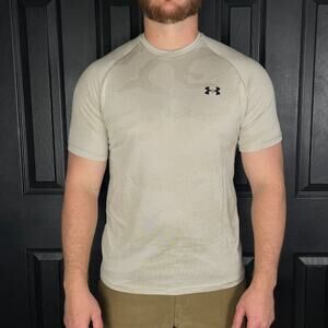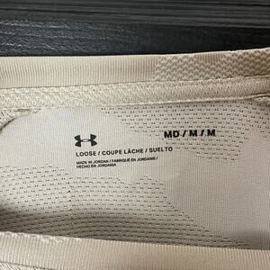 Perfect Condition. Great beige neutral colored athletic shirt with texture. Loose Under Armour fit that breatheable and stretchy.