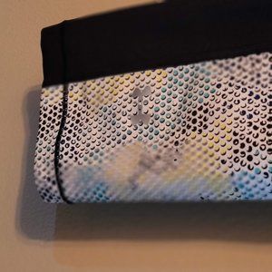 Under Armour Capri Leggings Colorful Polka Dot details. Size Medium. Close up photo of material shown for detail.