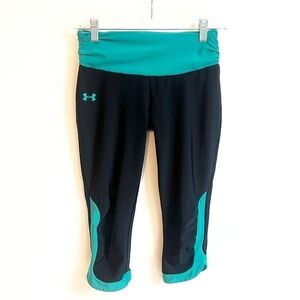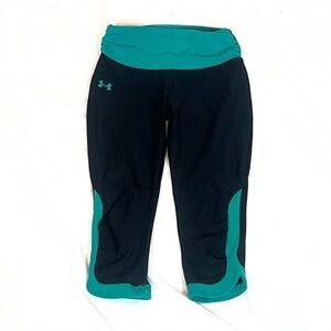 Under Armour Capri Leggings Heat Gear Black Blue Small Pull On Athletic Stretchy