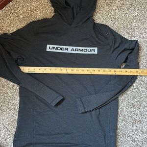 Comfortable charcoal hoodie with bold Under Armour branding. Ideal for everyday wear.