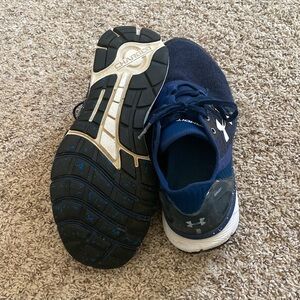 Gently used, in excellent condition. Men’s size 8 Under Armour Charged Bandit II sneakers. Navy blue and white.