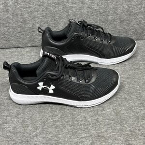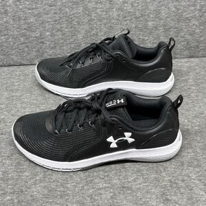 The Under Armour Charged Commit TR 3 Black White Size-12 is a stylish and versatile athletic sneaker designed for men. Featuring a lace-up closure and a cushioned design, it offers comfort and breathability for various activities such as gym training, cross-training, and running. The black color with white accents gives it a sleek and modern look, perfect for the summer, fall, or spring seasons. Made with mesh upper material, it is lightweight and ideal for active individuals looking for quality athletic footwear.