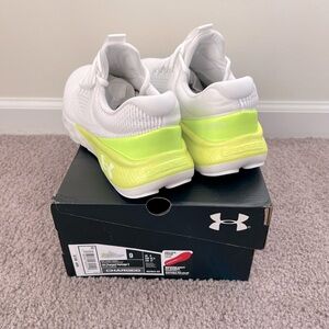 Men’s Under Armour Charged Vantage 2. White/green color. LIGHTLY WORN ONCE, BRAND NEW CONDITION. Comfortable sneaker, perfect for exercising at the gym.