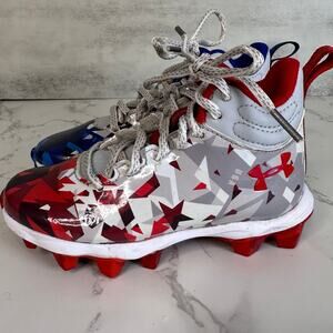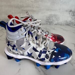 Under Armour Cleat Shoes Blue Red Kids Boys 11 Freedom Freedom Lace Up Abstract