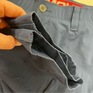 Comfortable looser cut breathable athletic fabric pants by Under Armour. Great for golfers, coaches, or business casual days, these pants are lightweight and stylish. Two posterior pockets, two hip pockets, button and zip fly. Under Armour embroidered logo on both anterior and posterior pockets. Slight roughing of hems, but no actual holes.