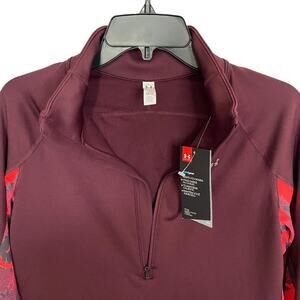 Under Armour Cold Gear Fitted Pullover Burgundy Pink Front Zipper Large