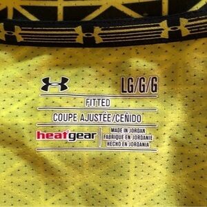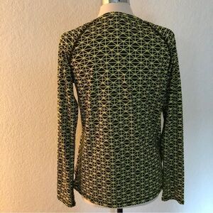 Keep warm in this ladies Underarmour V neck pullover. This Cold Gear geometric design will fill the bill. In preloved condition. Measures appropriately 21” across bustling and 26” long.