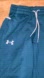 UA youth size medium joggers. Joggers feature 100% poly emerald green thick Cold Gear material; elastic waistband with gray drawstring; front pockets; side pocket with gray accent piping; banded ankle cuffs; and gray 3D logo emblem on right upper leg. Small spot on right knee (not a hole). Gorgeous emerald green color! Very good used condition from a smoke free home. Refer to pictures for measurements/condition.