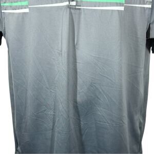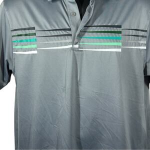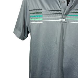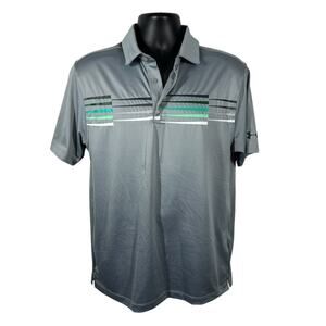 Stylish Under Armour polo. Gray with green and white stripes. Comfortable fit.