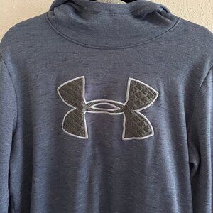 Stay warm and comfortable with this Under Armour ColdGear hoodie in a heathered blue. Features a large quilted logo on the chest, soft fleece-lined interior, and a loose fit for easy layering. Designed to retain body heat while wicking away moisture, ideal for training or casual wear in cold weather.