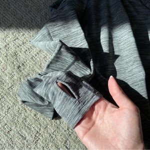 Stylish Under Armour top with long sleeves. Features a heathered gray design and high collar.