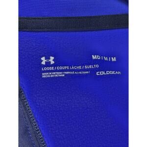 Under Armour ColdGear Mens Medium Quarter Zip Pullover Blue Black Loose Fit Pullover Athletic Training Sweatshirt Loose Fit Performance Kangaroo Pocket