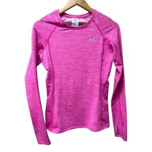 Stay warm and stylish with this Under Armour ColdGear Long Sleeve Top in bright pink, size Small. Features a crew neck, thumb holes, and ColdGear fabric to keep you cozy during workouts or chilly days.