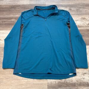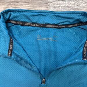 Under Armour Coldgear Blue & Grey Mens Large Lightweight Activewear Top In good pre-owned condition stretch loose fit quarter zip sporty goprcore athleisure