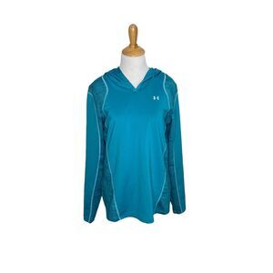 Under Armour Coldgear Tech Pullover Hoodie Womens Large Aqua Blue Layering