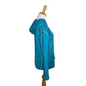 Under Armour Coldgear Tech Pullover Hoodie Womens Large Aqua Blue Layering. In good condition. 86 % polyester /14 % elastane. Lightweight. Good for layering. Approx measurements laying flat: Pit to Pit 19 Length 25
