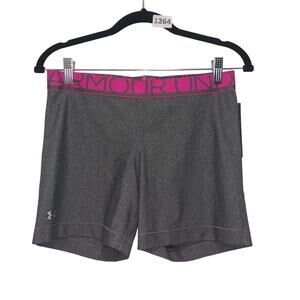 Under Armour, Compression Biker Shorts, Size L, (fits like M) Gray, Hot Pink