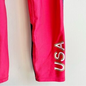 Under Armour Olympics Team USA Compression Heatgear leggings. Vibrant red with blue accents. Perfect for workouts. Inside hidden key pocket in front.