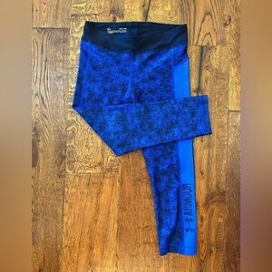 Under Armour Womens Small running athletic capri leggings spandex Blue Navy