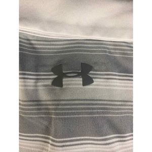 This Under Armour CoolSwitch Bermuda Men's Golf Polo Shirt is a must-have for anyone who loves golfing in style. Featuring a striped pattern, short sleeves, and a collared neckline, it has a fun and sporty look. The shirt is made from polyester material, making it breathable and anti-microbial, which is perfect for golfing in the sun. It is also available in XL size and grey/white color, giving you a variety of options to choose from.