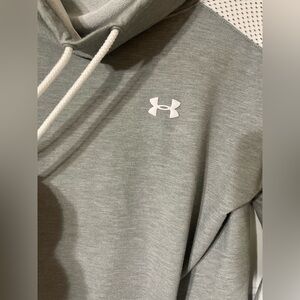 Under Armour Cowl Neck Gray Cropped Hoodie Logo Athletic Athleisure Sporty Small