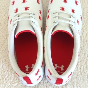 Under Armour sneakers in white with bold red accents. Stretch canvas upper provides the ultimate fit & complete comfort