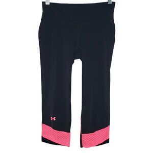 Under Armour Cropped Leggings Size Small Back Zipper Pocket Pink Support Logo