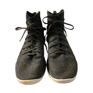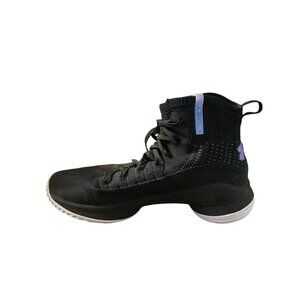 Elevate your basketball game with these Under Armour Curry 4 'More Range' sneakers. Designed in 2017, these high-top shoes feature a sleek black colorway with the iconic Under Armour Stephen Curry product line. The shoes are customized with a UK shoe size of 9, US shoe size of 10, and EU shoe size of 44, making them perfect for men who want to up their shoe game.