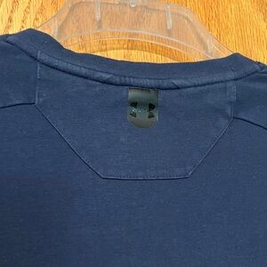 Stylish dark blue Henley tee. Features short sleeves and a chest pocket. Perfect for casual outings.