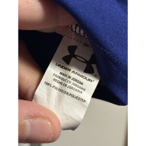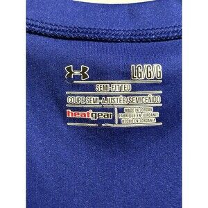 Under Armour Dri-Fit Shirt Large Blue Pink Logo V-Neck Short Sleeve Active Gym