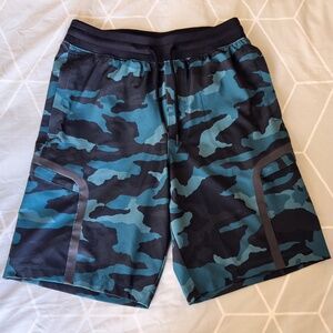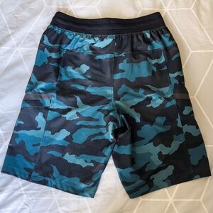 Under Armour 'Elite' athletic/cargo shorts, in blue/green camo. Men's size medium. In excellent condition with no stains or holes. Inseam is approximately 9".