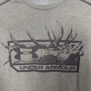 The Under Armour Elk Hunting Thermal Shirt is a versatile and high-performance piece of activewear designed for men. Made from 100% polyester knit fabric with a medium wash, this pullover shirt features long sleeves and a crew neckline for added comfort. The thermal properties make it suitable for cold weather activities like hiking, training, or hunting, while the stretch fabric ensures a flexible and comfortable fit. The olive drab green color and bull elk image add a practical and stylish element to this wardrobe essential from the Under Armour ColdGear line.